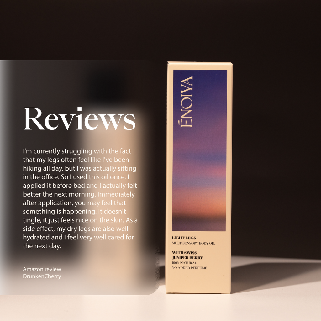 The Light Legs Body Oil is a rejuvenating product that offers a range of health benefits for your legs. Its main ingredient, juniper berry, is combined with mint and cypress to create a unique formula. This oil relieves the heaviness and fatigue in the legs, promotes blood circulation, and aids in the elimination of toxins. Enjoy the freshness and revitalization that this body oil provides for your tired legs.